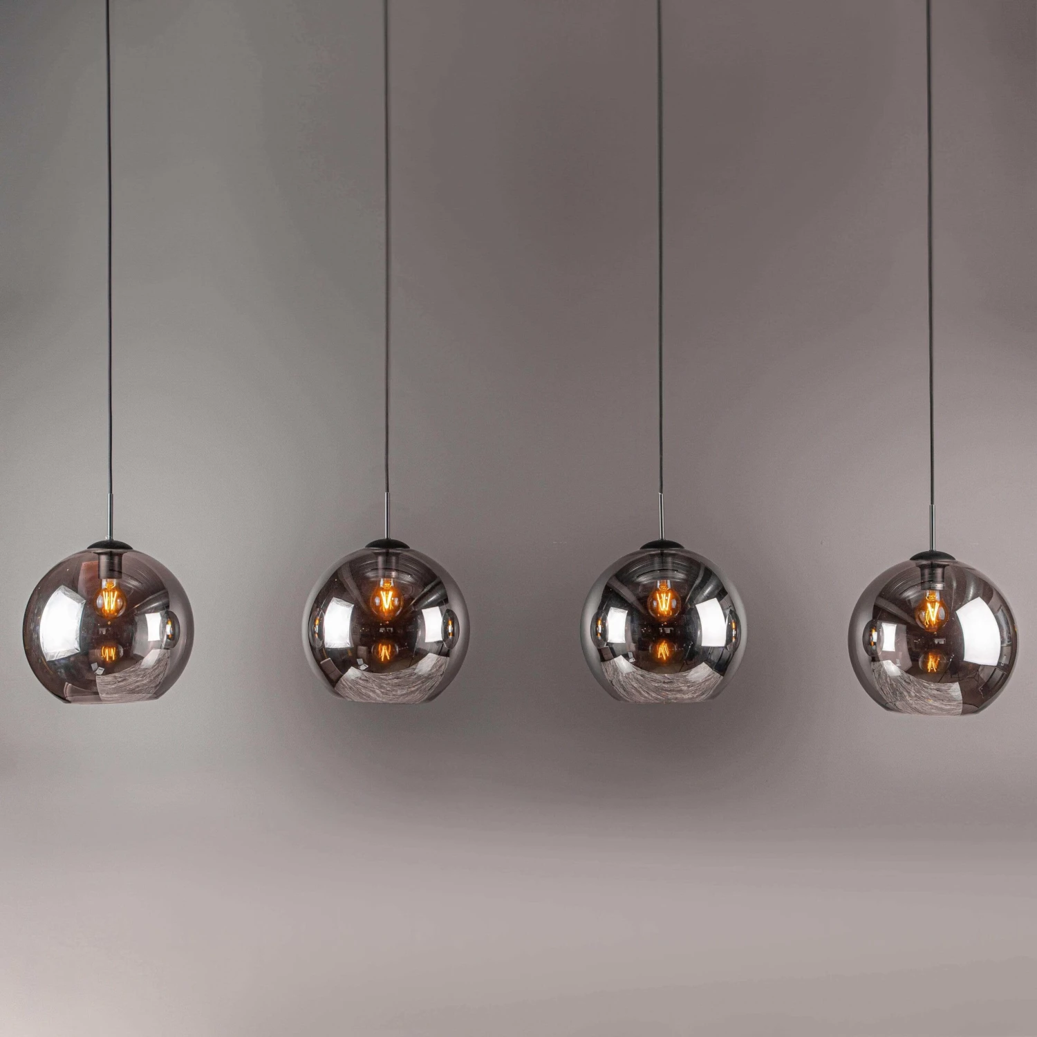 Transform your space with our 4 Light Matt Black Bar Pendant Light, featuring a sleek black ceiling bar and stunning smokey grey glass shades that exude sophistication. Its versatile design makes it ideal for any area, from a dining table to a kitchen island or breakfast bar. Elevate your home decor with this must-have piece!