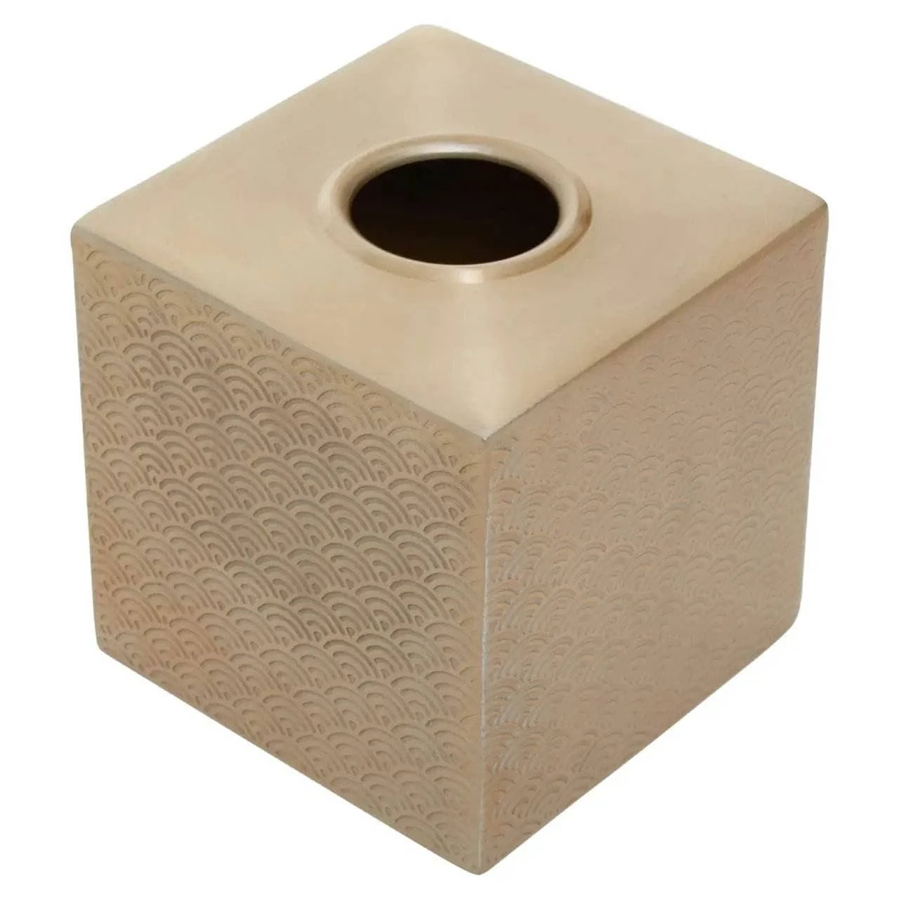 Elevate your home office or bathroom with the Allegra Aluminium Tissue Box. Handcrafted with a luxurious champagne gold finish, this tissue box exudes style and timelessness. Complete your decor with the available matching accessories.