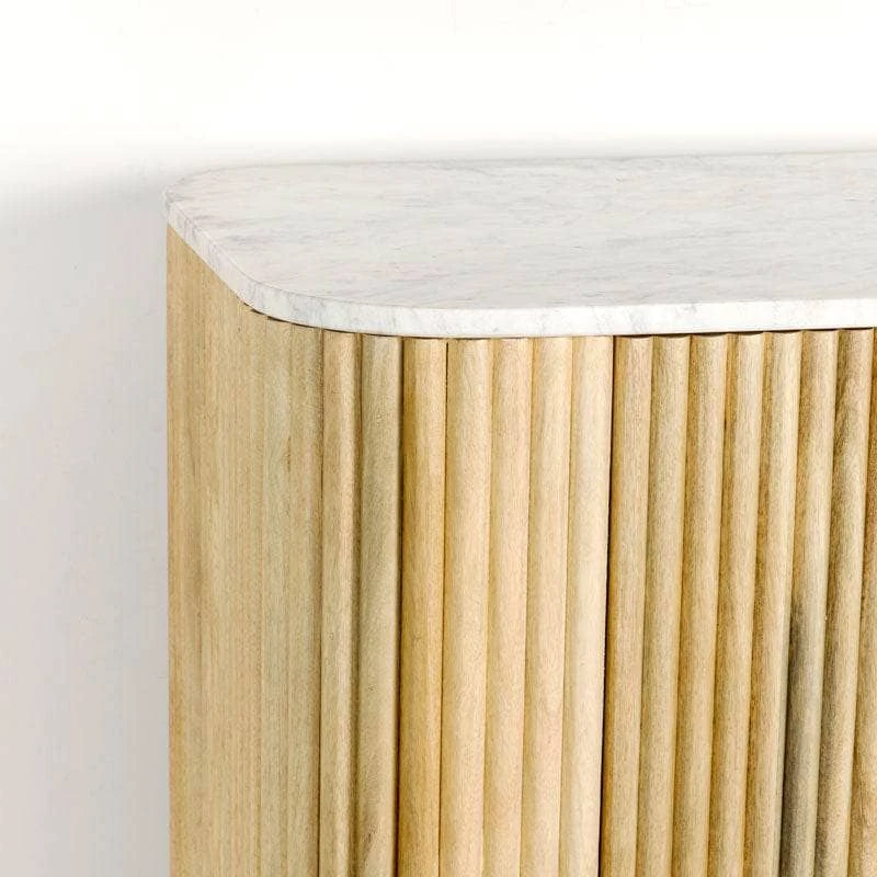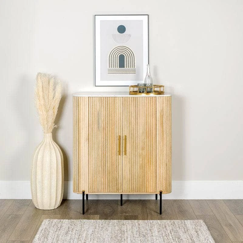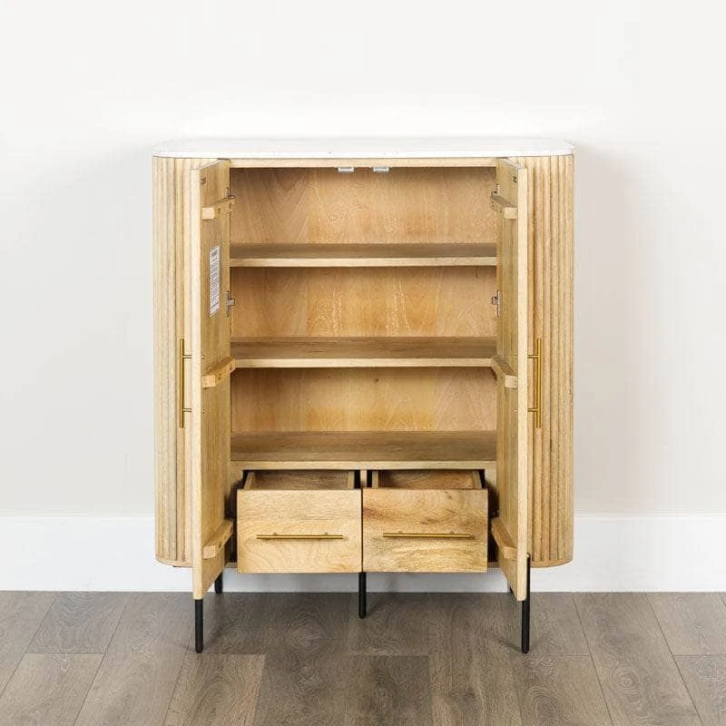 Experience the beauty of natural wood in your home with this Ariel Highboard. The Ariel Highboard is crafted from natural materials, creating an aesthetically pleasing and unique piece of furniture. Every item is distinct, featuring unique markings and colours that add to its charm. It is an ideal addition to any home.