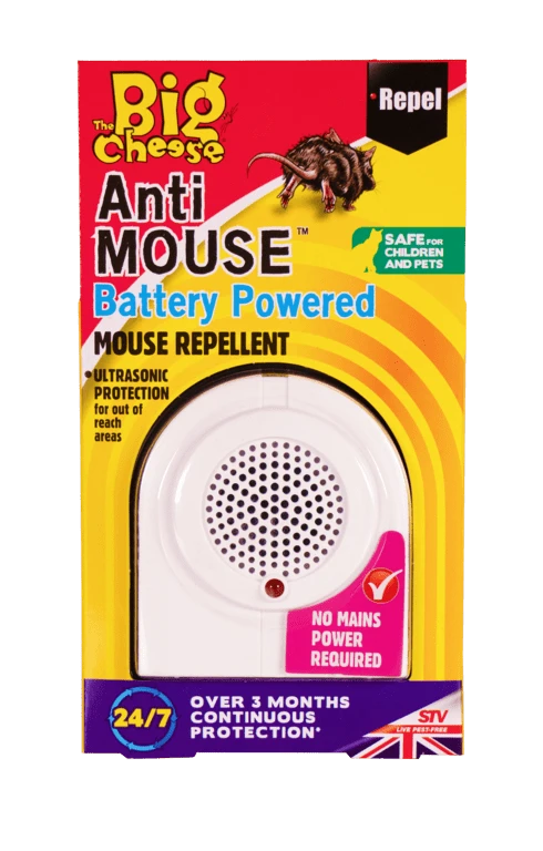 Safely repel mice with this battery-powered anti mouse repellent. Ideal for use in lofts, sheds, and cupboards, it uses natural ultrasonic sound and frequency waves to drive away mice and other rodents. Keeps your home free from pests with no need for dangerous traps or poisons.