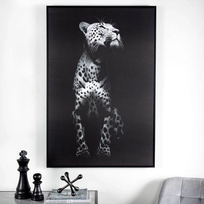 Experience the wild side of nature with our striking Black & White Leopard Canvas. This detailed portrait of a leopard in monochrome makes a bold statement piece in any room. Add a touch of elegance and fierceness to your decor with this 80 x 120cm canvas.