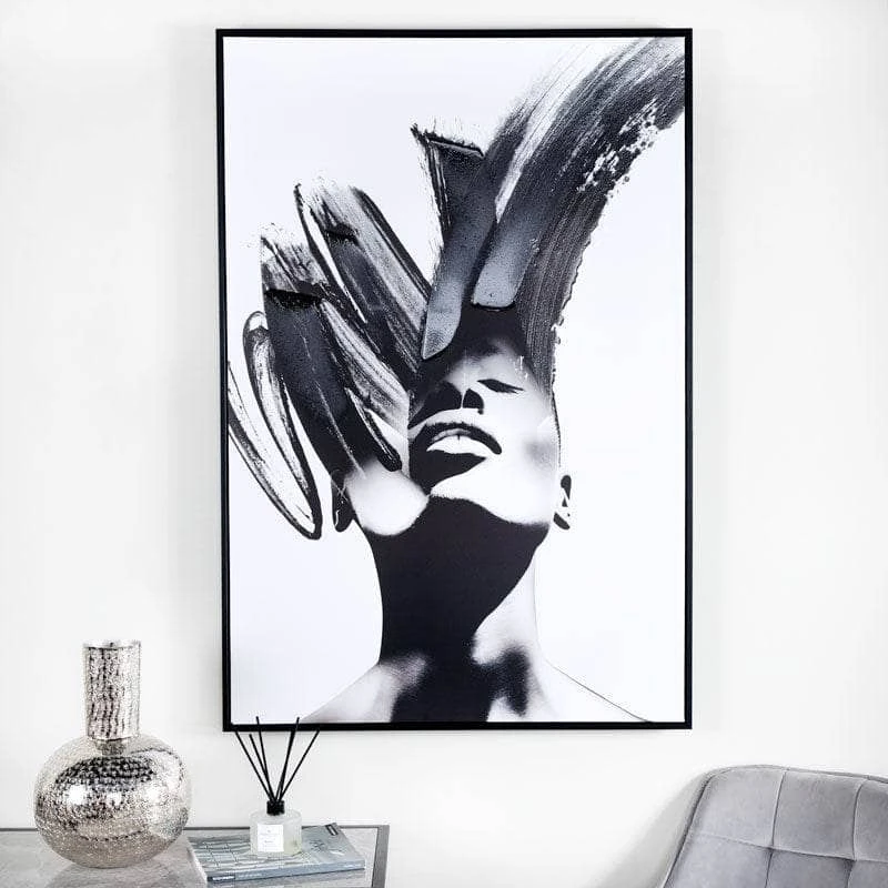 Transform your home with our Brushstroke Beauty Framed Canvas. This unique artwork showcases a contemporary black-and-white depiction of a woman, elevating elegance and adding flair to any space. The brushstrokes bring dimension and character to the piece, making it a remarkable addition.