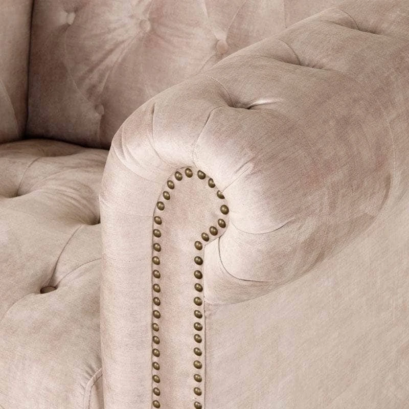 The Buckingham Armchair – Taupe is perfect for adding comfort and style to your living space. Its timeless Chesterfield design features classic rolled arms and is finished with studs. The cosy taupe fabric is an ideal choice for both warm and neutral colour schemes that match flawlessly with gold or silver accessories.
