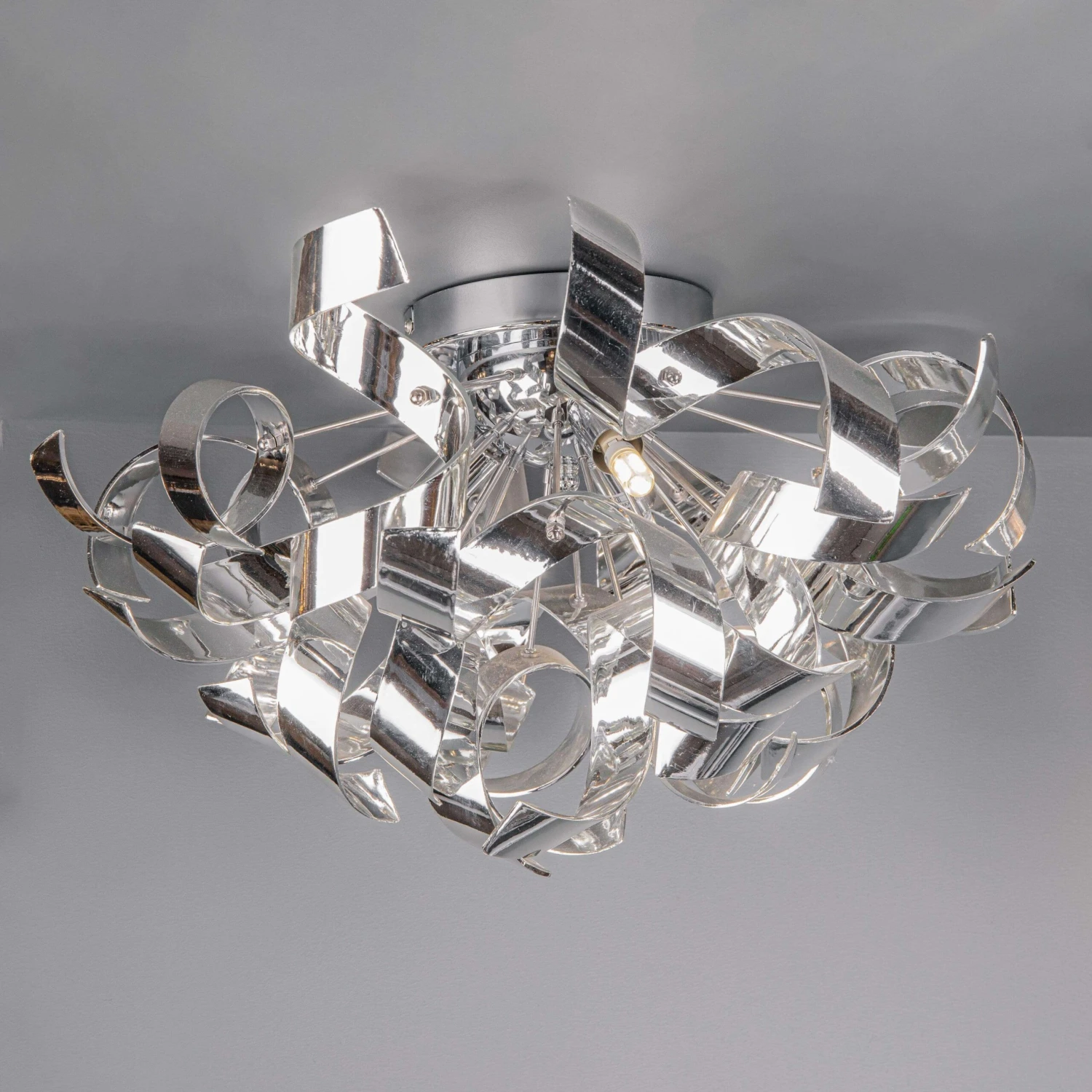 The Curls semi-flush ceiling fitting is a striking chrome fitting decorated with curled ribbons of polished chrome. Use of incompatible bulbs risks damage to the switch, fitting or bulb. It’s designed to be a stylish addition to any room, and its durable construction ensures long-lasting use with the correct bulbs.