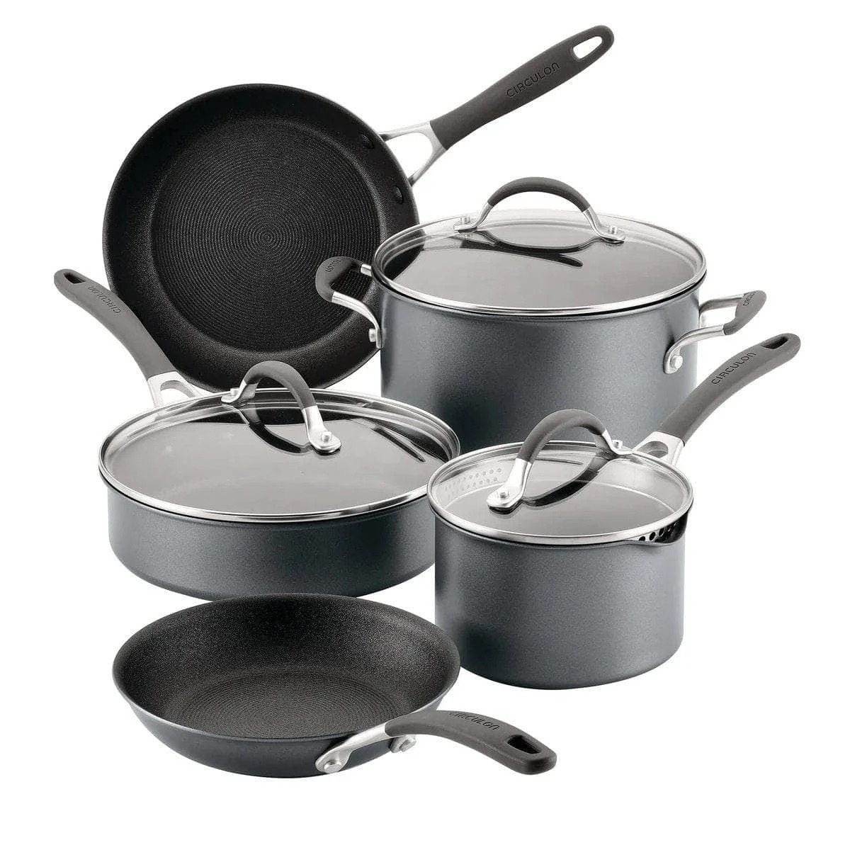 Transform your cooking game with the Circulon ScratchDefense Extreme Non-Stick Pan Set! This ultimate collection has everything you need for your kitchen, making it the perfect new home gift. Say goodbye to scratched pans and hello to a must-have addition to any kitchen.