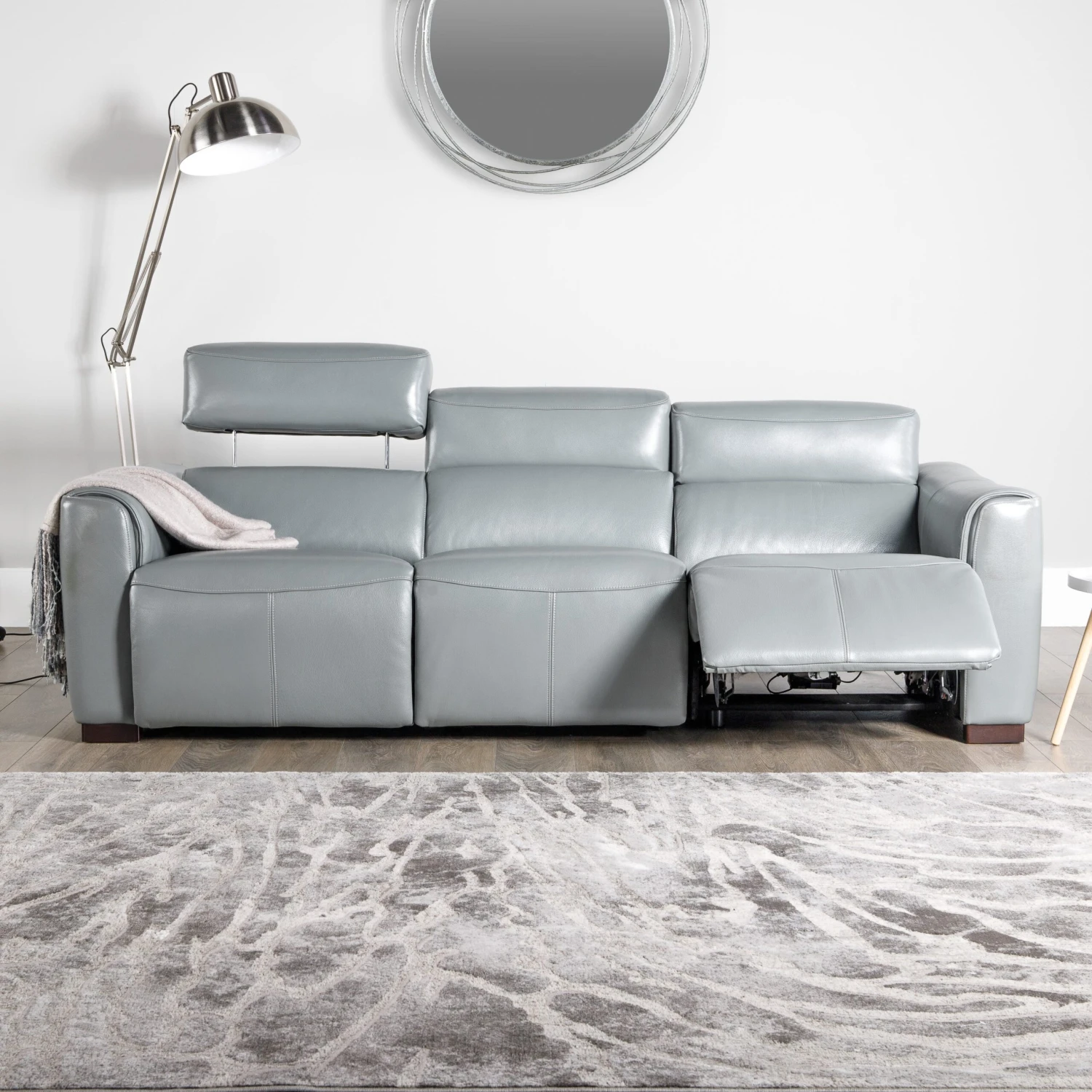 With an Italian style, the Ozark 3 Seat sofa has power recliners on both end seats. It also features power head rests to enable neck support when the sofa is reclined. With sprung seats designed to offer support and comfort, it also helps to reduce pooling on the seats. Hard-wearing robust leather. Power recline ends & headrests (End seats only). Frame of the Ozark Sofa is a mixture of Hardwood and Metal.