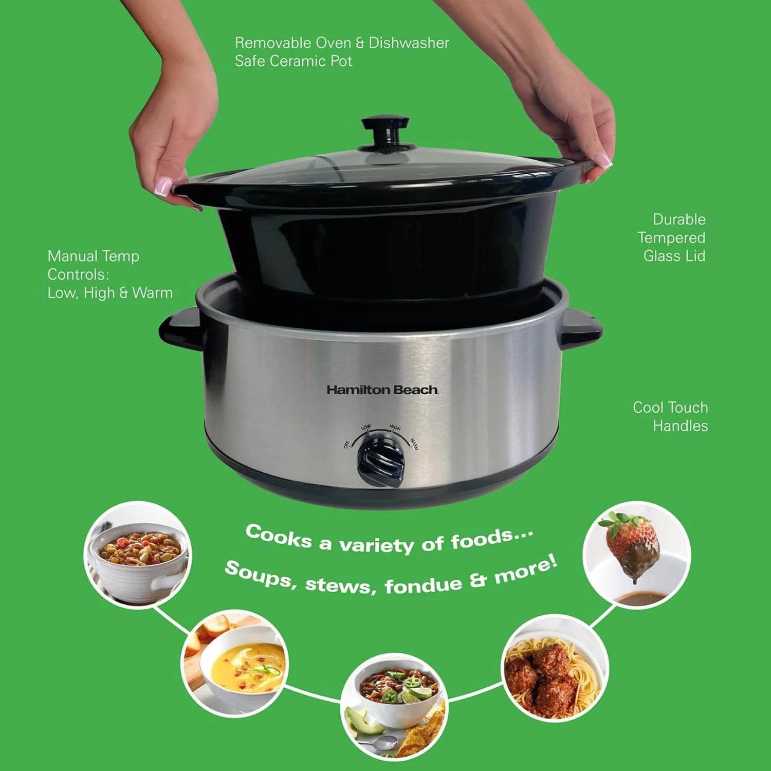 Transform your cooking with the Hamilton Beach 6.5L Slow Cooker! Indulge in mouthwatering dishes with effortless controls and a ceramic pot that can be safely used in the oven. Its spacious capacity and dishwashing-friendly construction make mealtime a breeze. Discover the perfect blend of convenience and taste with this all-in-one kitchen essential!