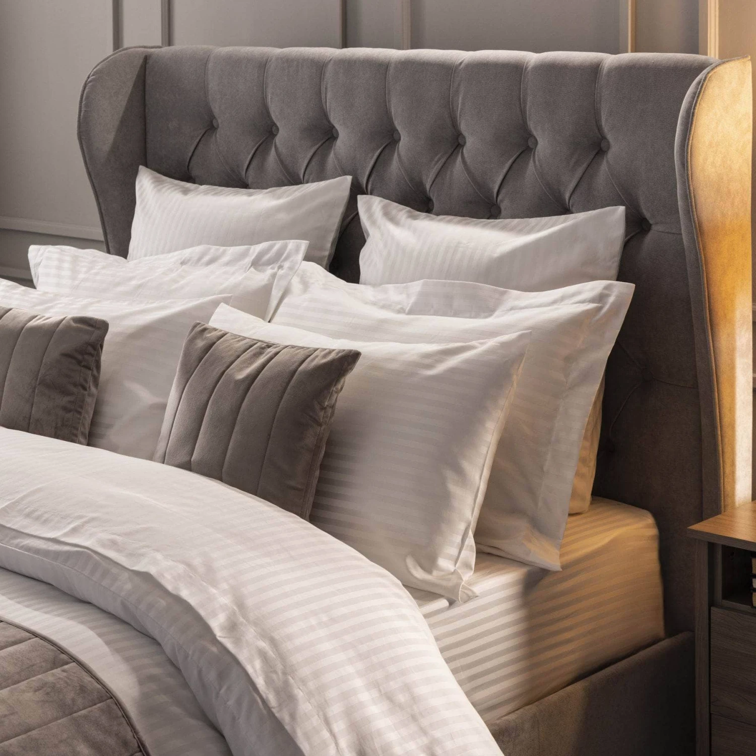 Transform your bedroom into a luxurious, stylish retreat with our Hotel Suite White Satin Stripe Duvet Cover Set. Experience the ultimate in hotel luxury and elevate your sleeping experience with this modern, clean bedding set. Discover the perfect white set today.