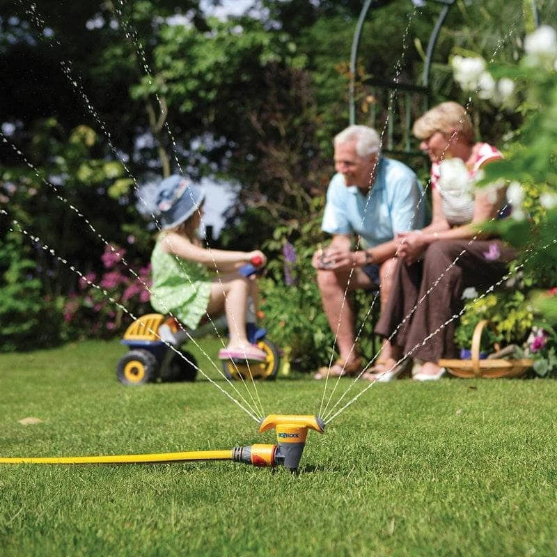 This Hozelock Round Sprinkler is incredibly easy to use, simply attach a hose using a female hose end connector and mount the tough spike into the ground where needed.