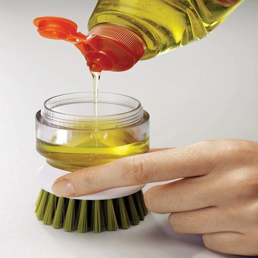 Streamline your sink with this neat, compact design. This sturdy palm-held washing-up brush features an easy-fill washing-up liquid reservoir that dispenses the required amount of soap with a simple push of the top summary. Its compact size makes it easy to control and ideal for cleaning pots, pans and dishes. The brush has its own convenient storage stand that allows it to drip dry hygienically and the whole thing dismantles for easy cleaning. .