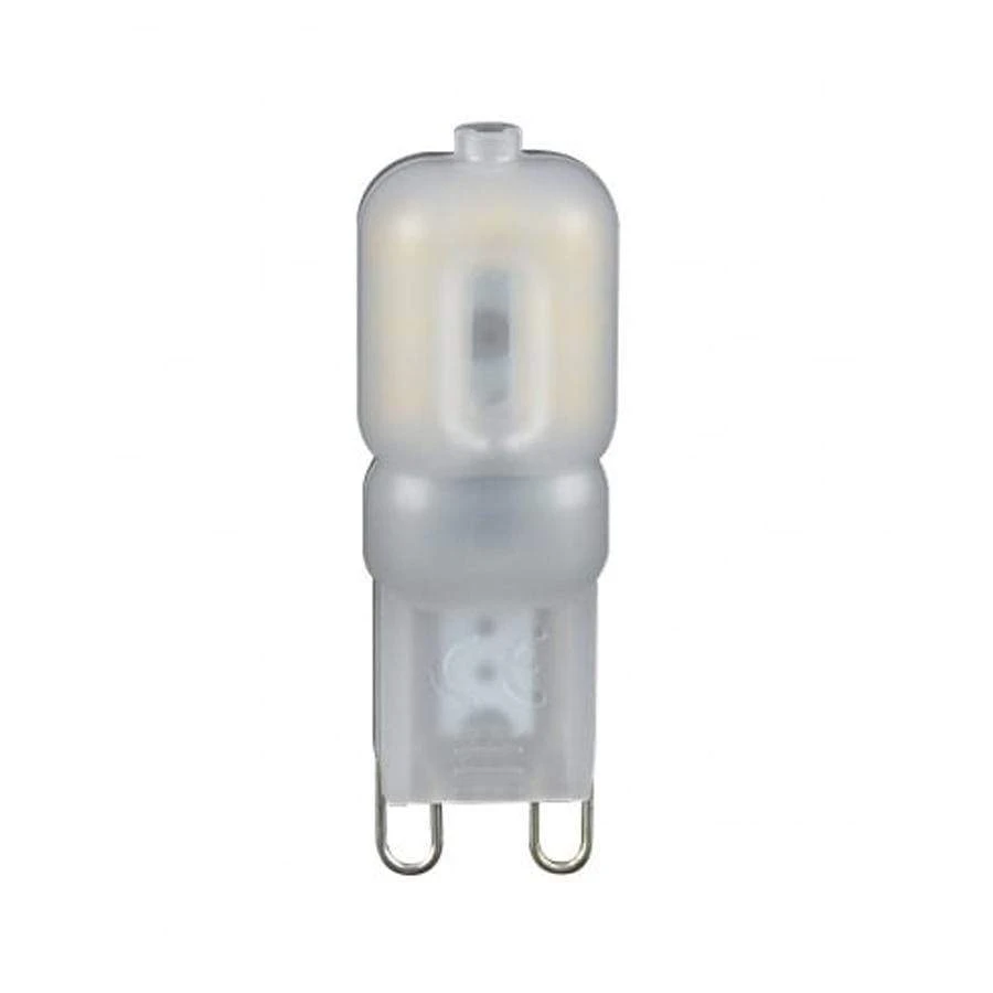 This bulb has a new lightweight plastic opaque casing which houses the 3000k LED. It’s slimline shape is equal in size to the halogen G9 therefore it is able to fit inside almost any G9 light fitting. Estimated 2,500 hours of operating time and provides 180 lumens with a 270-degree beam angle.