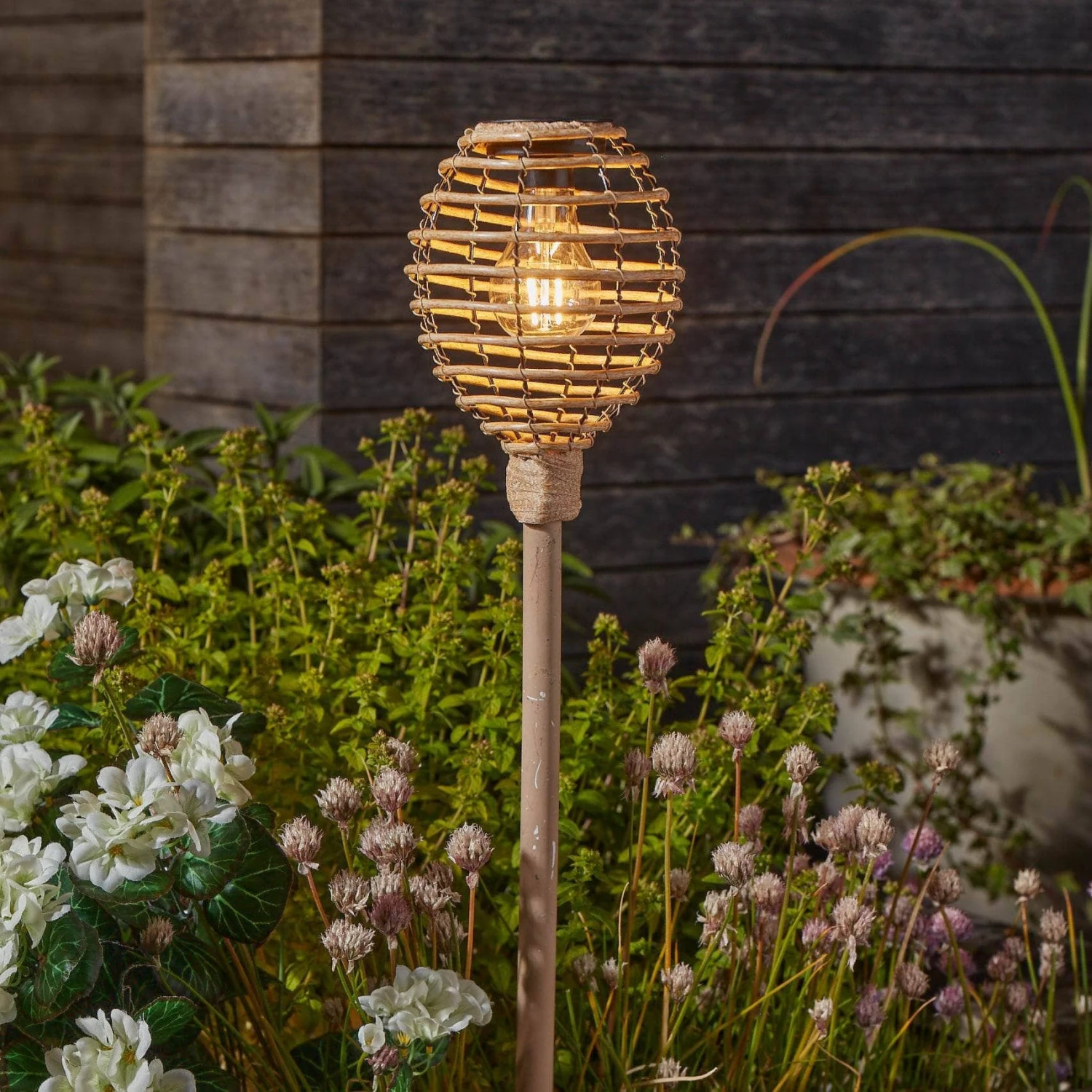 Illuminate your outdoor space with Lumina’s Natural Faux Rattan Stake Light! This solar-powered light creates a warm, inviting atmosphere in your garden. Use multiple lights to guide your way and add a touch of beauty to your pathways and borders. Experience the magic of your garden at night with Lumina!