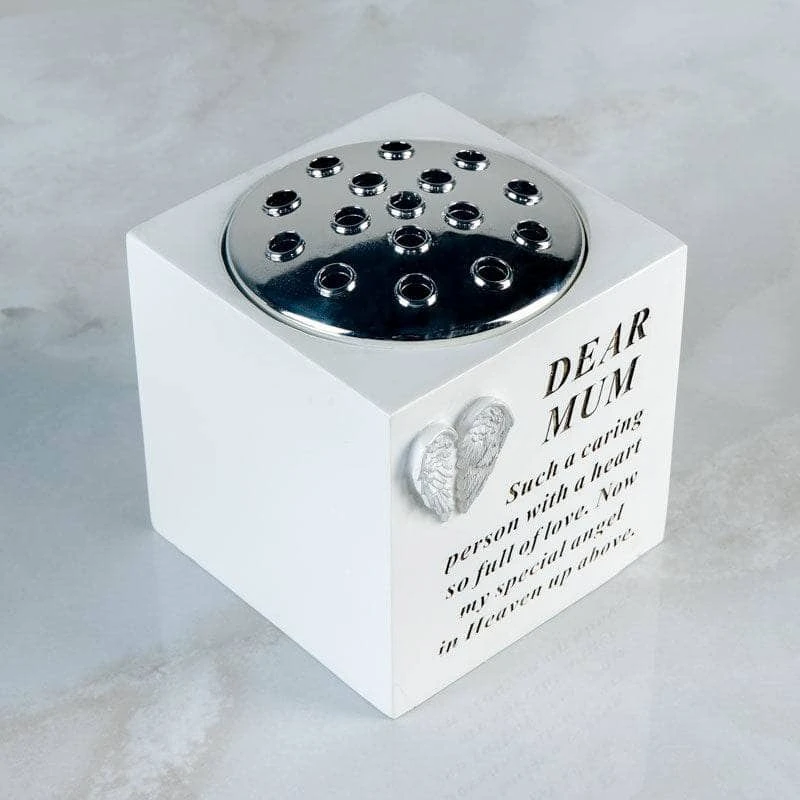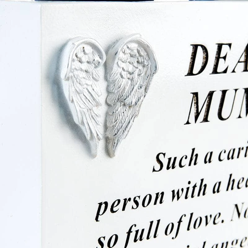 This Mum Memorial Angel Wings Vase beautifully commemorates the passing of a loved one. It is designed with a pair of angel wings that evoke a sense of peace and protection. Crafted from a high-quality material, this vase makes a lasting tribute to your loved one.