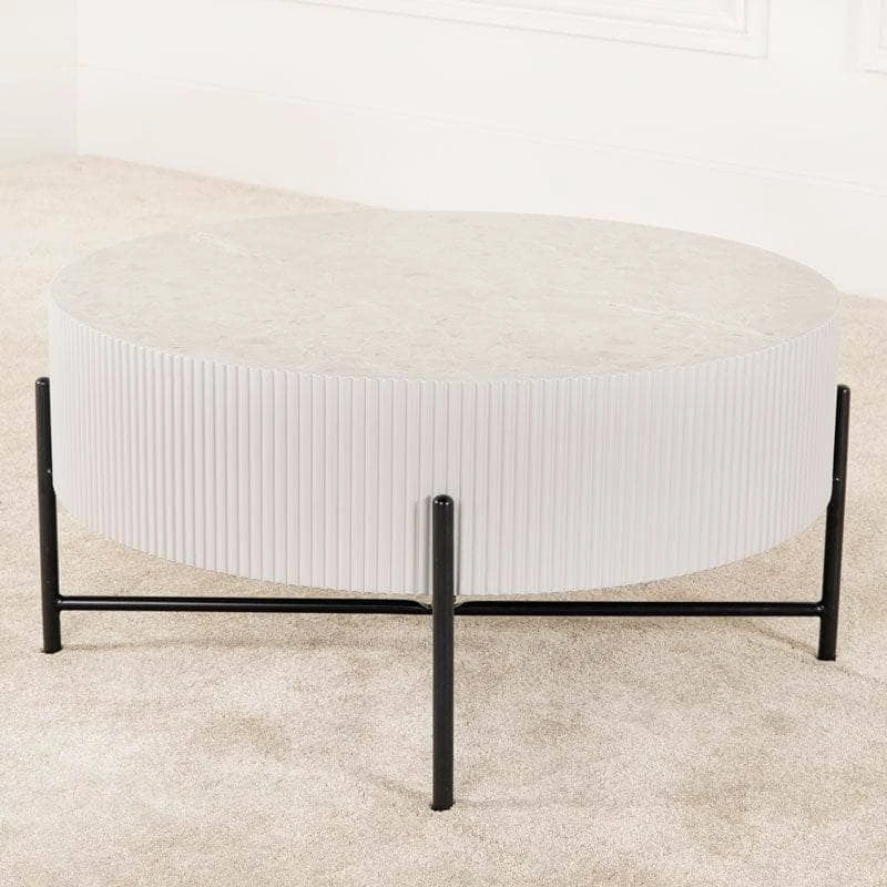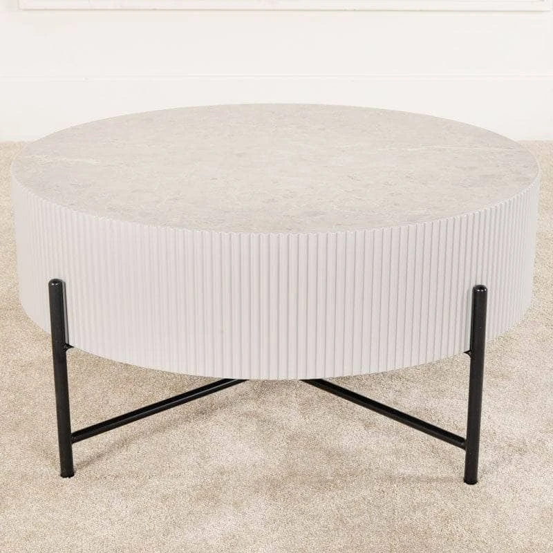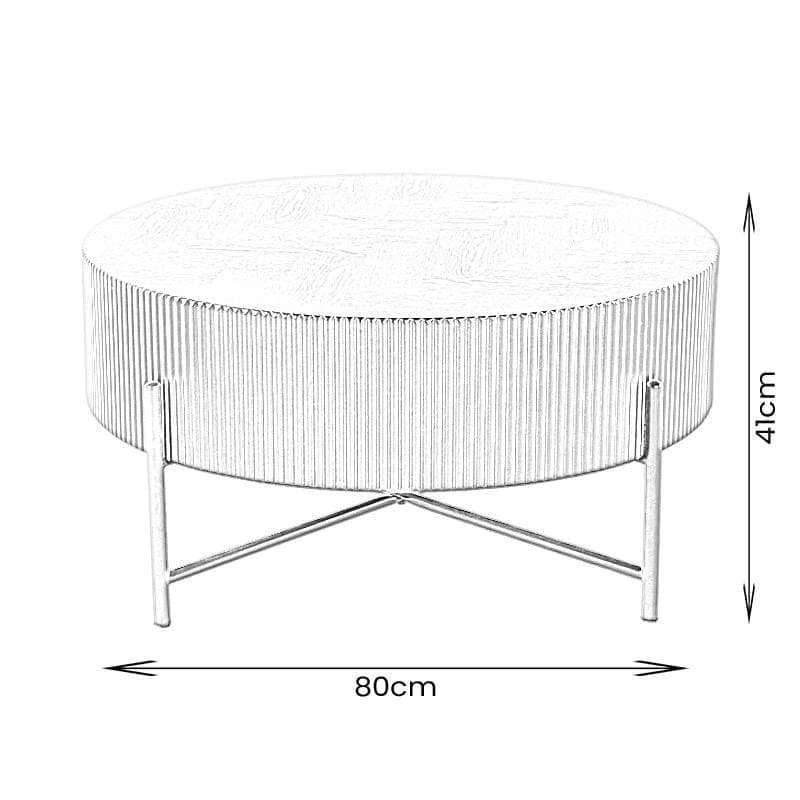 The versatile grey finish adds a sleek touch to your home and perfectly complements any interior style, from minimalist to industrial chic. The round shape allows for easy flow in your living area while providing ample space for your favourite items like drinks, books, and decorative accents!