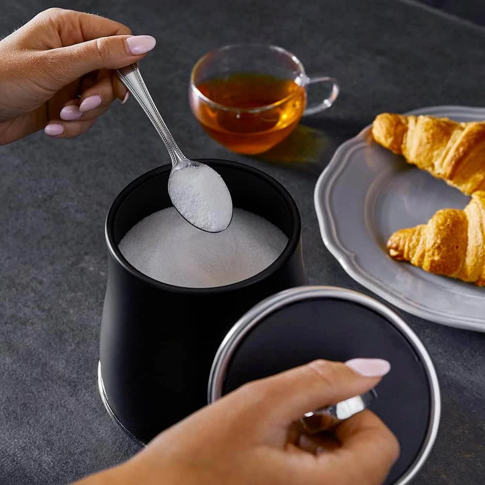 Bring modern style to your kitchen with this Renaissance Set of 3 Canisters. The sleek black finish and easy-to-clean design makes an attractive storage solution for your favourite snacks and treats. An added bonus – the set comes with stickers to help label tea, coffee, and sugar. Perfect for maintaining an organised kitchen.