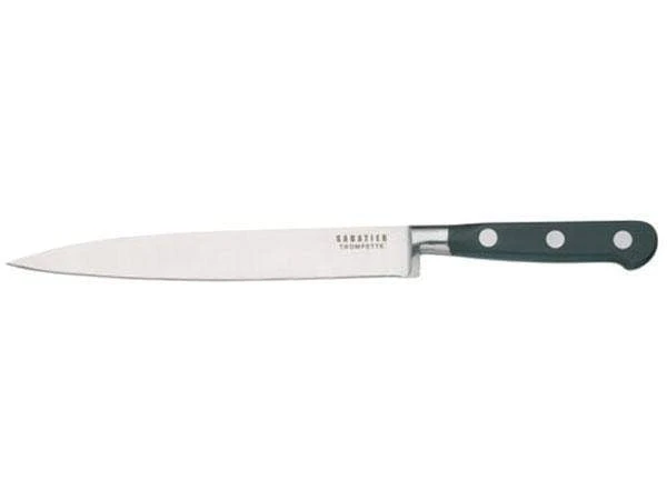 The Sabatier Trompette Carving Knife can be used for carving and slicing cooked meats or larger fruit and vegetables. The thinner blade allows for more accurate slicing than that provided by a Cook’s Knife.