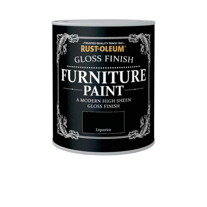 Rust-Oleum Furniture Paint’s glossy finish, deep black colour, and easy application makes it perfect for giving furniture a contemporary look. The no-prep formula allows for a quick, frustration-free painting experience, while the two-coat suggestion ensures a smooth, long-lasting finish.