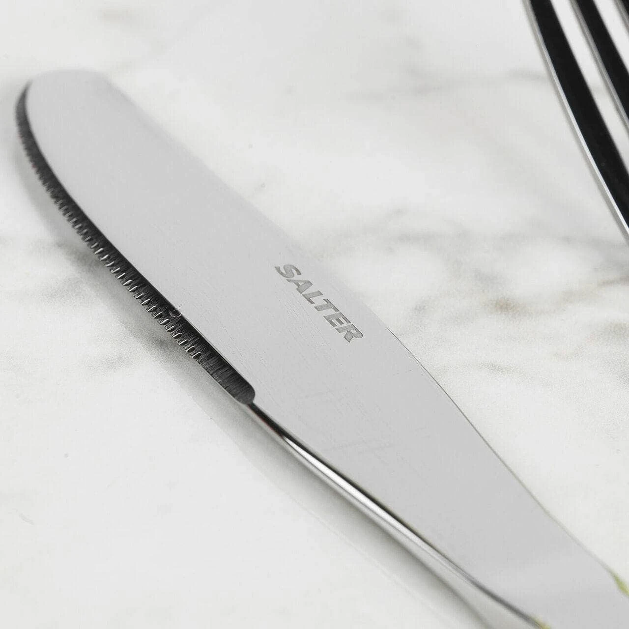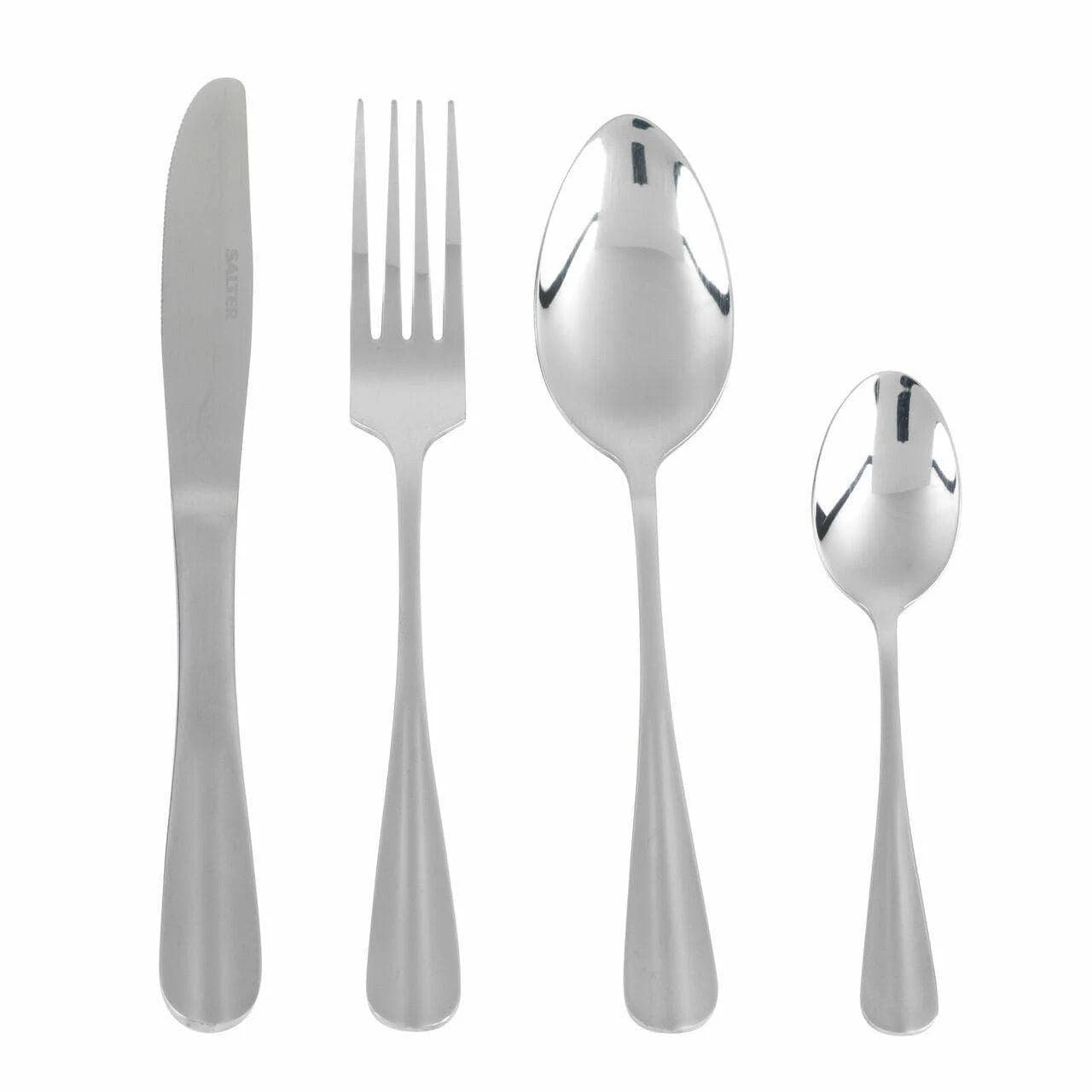 The Salter 24 Piece Newbury Cutlery Set is crafted with strong and durable stainless steel, designed for long-lasting use. The classic silver colour adds a timeless elegance to your dining experience. Enjoy years of use with this stylish and reliable cutlery set. The 24 pieces are crafted with a sleek look and strong, stainless steel material for a lasting, reliable performance. Enjoy classic style and durability whenever you set the table.