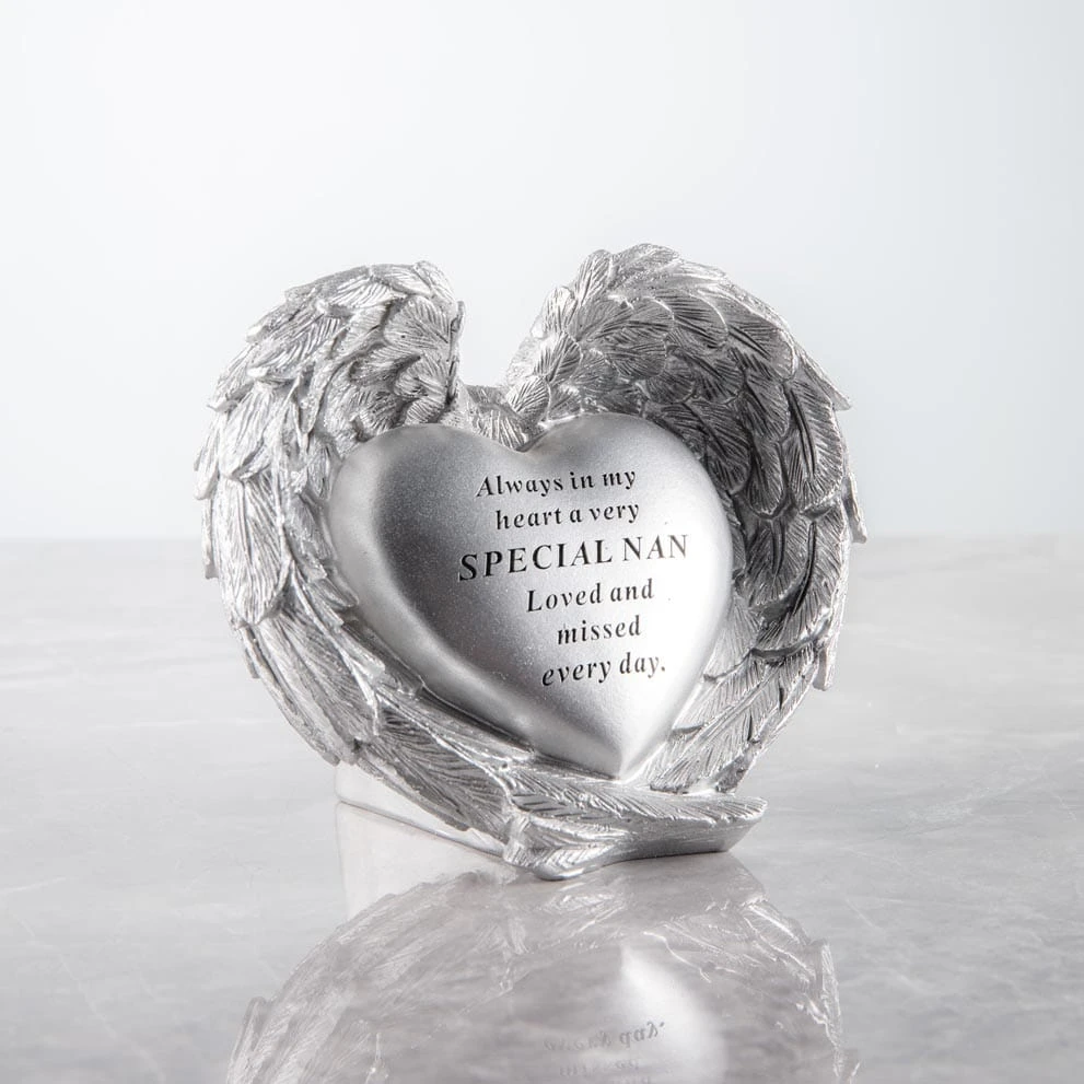 Silver Heart Angel Wings Memorial Ornament – Nan