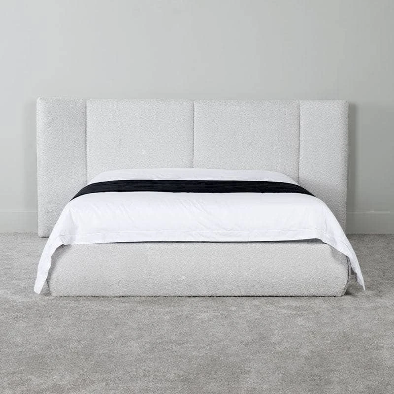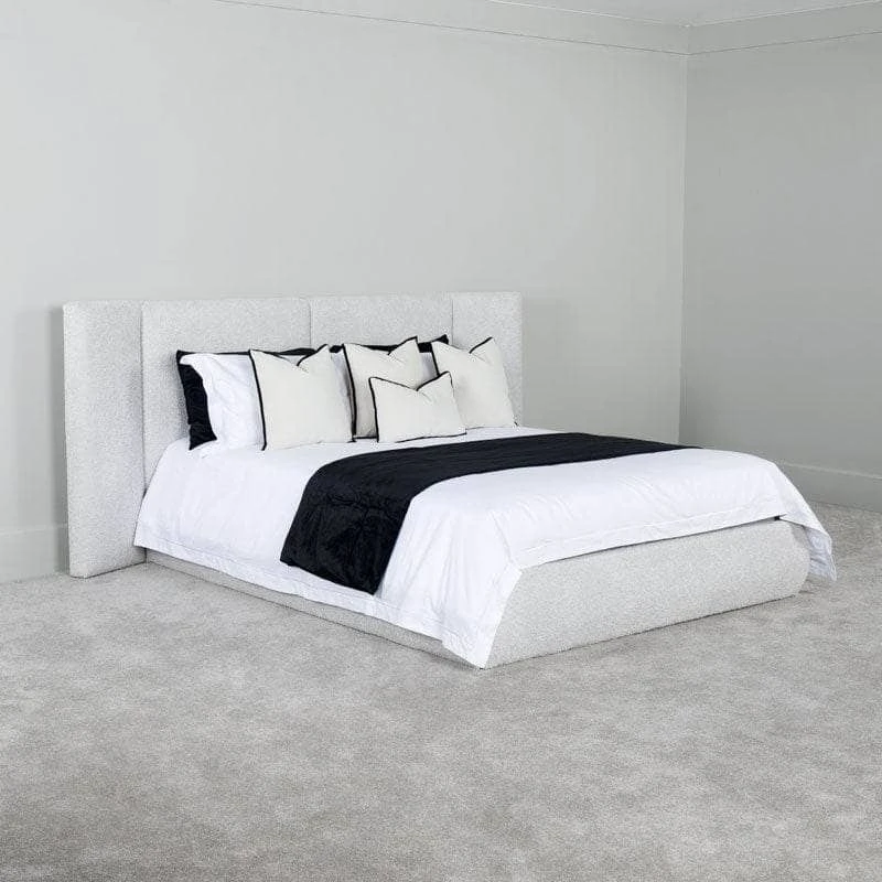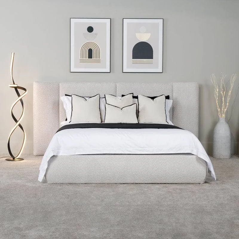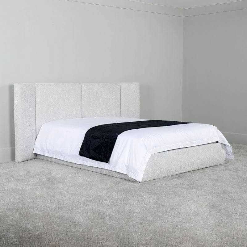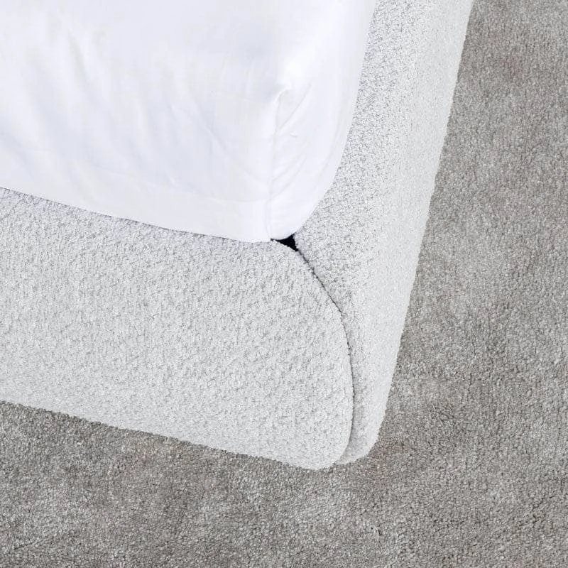 Introducing the Boucle King Size Bedframe in light grey – a masterpiece of comfort and style!