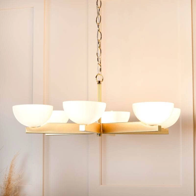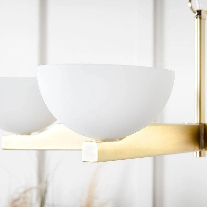 Transform your space into a cozy haven with the Trieste 6 Light Pendant Light – Stain Brass & Opal. Crafted with elegant satin brass metal and opal white glass, this chic accessory exudes warmth and charm. Elevate your home’s ambience and upgrade your lighting in bedrooms, living rooms, or dining areas. Create a stylish and inviting atmosphere with this must-have addition.