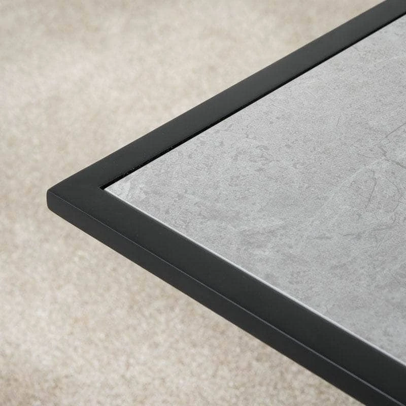 Crafted from premium ceramic, this coffee table features a sleek grey marble-effect surface that adds a touch of luxury to any room. The contemporary design is complemented by a black frame, offering a modern aesthetic that’s both chic and functional.