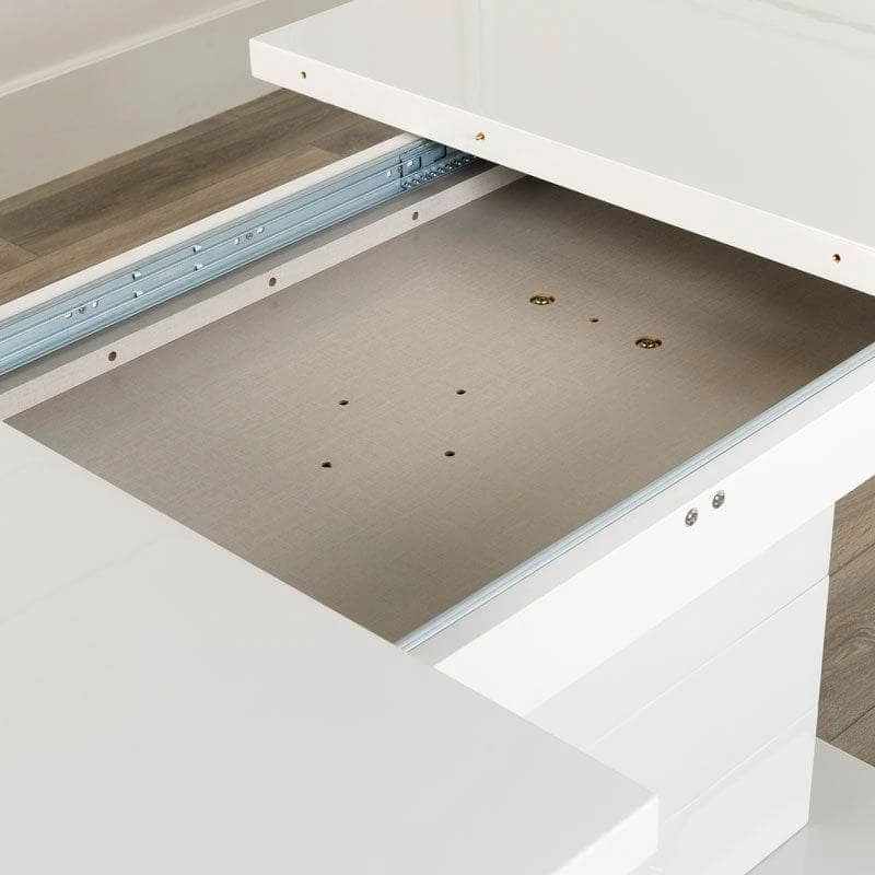 The Verona Extending Dining Table in Cashmere is perfect for larger families and dinner parties. With its neutral colour, it will fit any dining room colour scheme and it can extend to fit your entire family. Enjoy your meal in style and comfort!