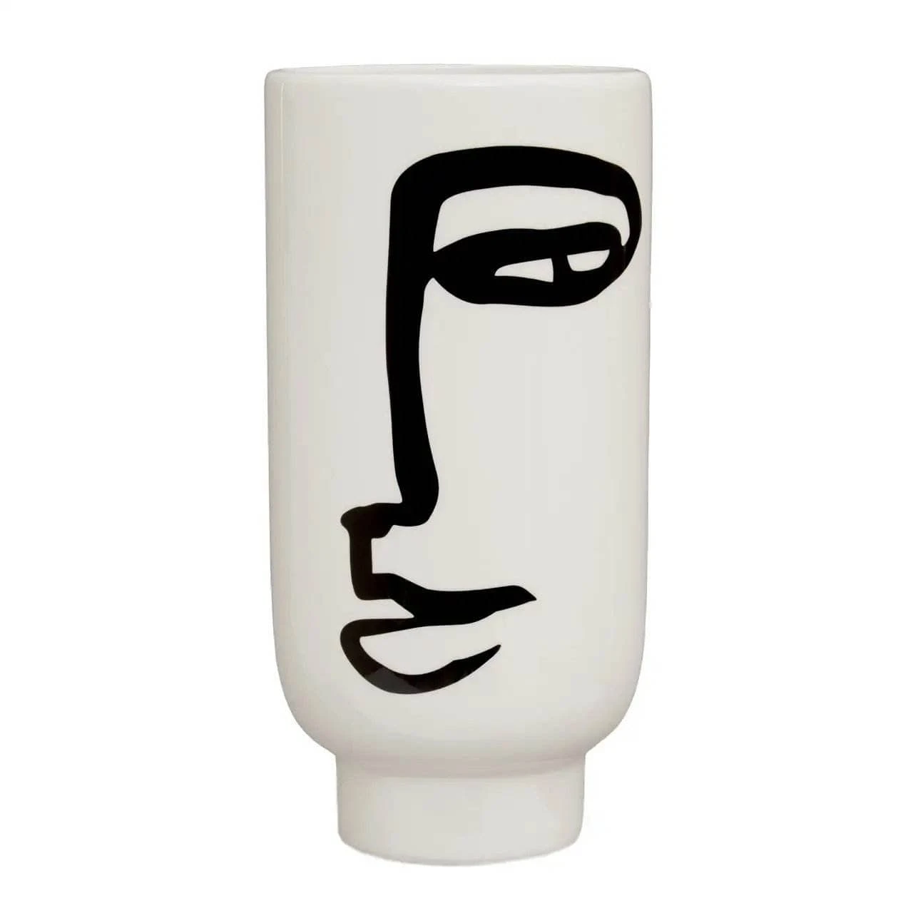 Experience the pure elegance and modern appeal of the Viso Fabia Large Face Vase. Made from high-quality ceramic and finished in a pristine white, this vase boasts a sleek and minimalist design, featuring a cylindrical body and a unique vintage face design. Elevate any room with a touch of contemporary sophistication.