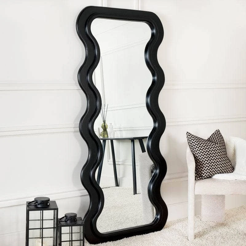 Revitalize your living area with the stunning Black Wavy Mirror. The frame’s graceful curves are inspired by the captivating flow of waves, infusing an artistic flair into the mirror. Transform your home ambience with a unique sense of fluidity and movement.